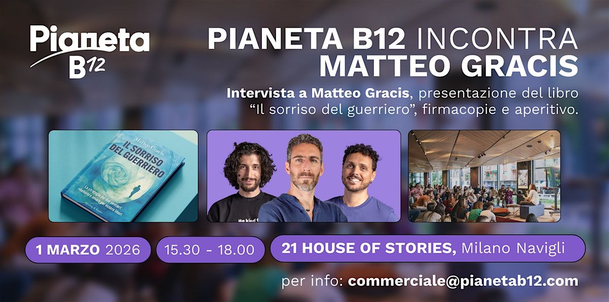 Durante questo evento potrai assistere a una puntata live di Pianeta B12, il podcast condotto da Il Vegano Imbruttito e Sprezzel, che per l’occasione intervisteranno Matteo Gracis, giornalista indipendente, libero pensatore e già ospite del podcast.