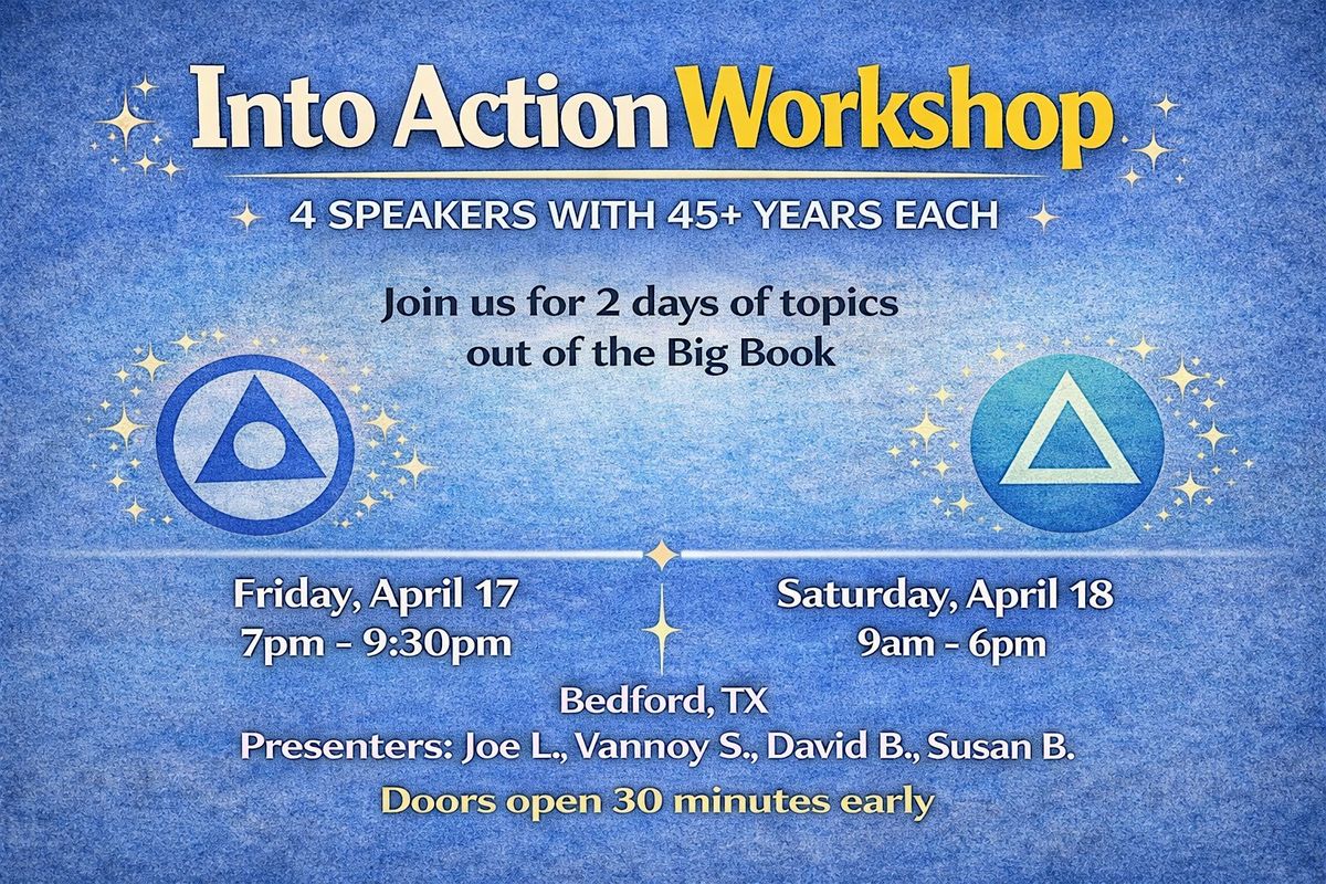 Join us for a powerful two-day Into Action Workshop focused on applying the principles of recovery to everyday life. Through shared experience, presenters will explore key topics from the Big Book, including The Family Afterwards, relationships in sobriety, the home group, and sponsorship.