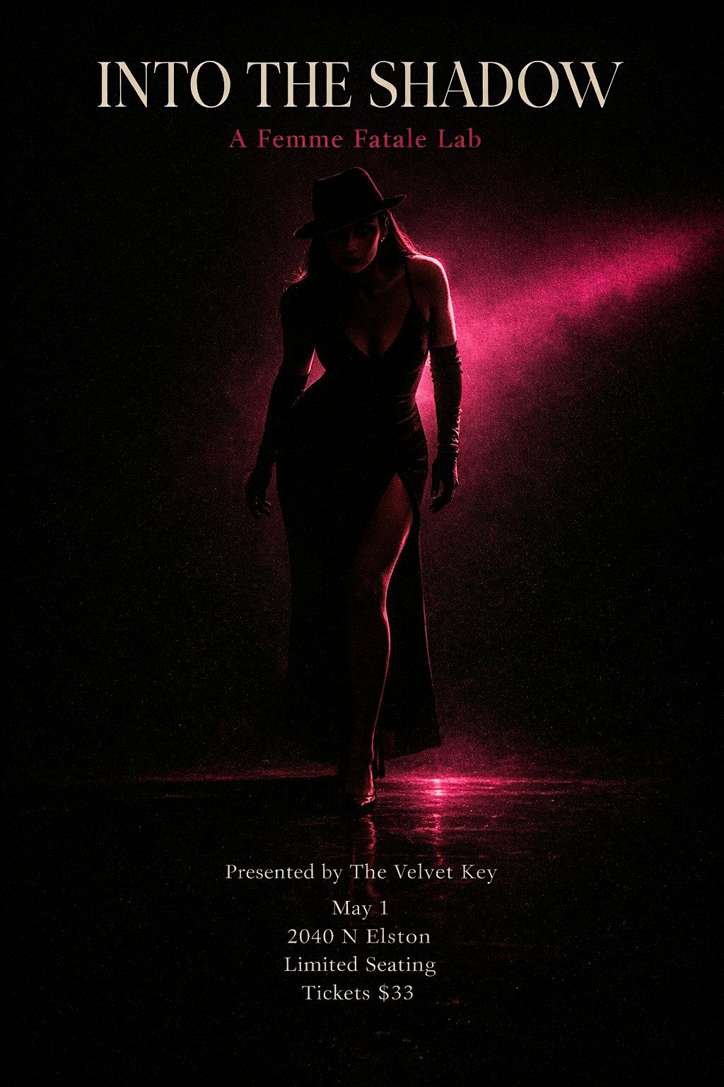 Into the Shadow is an intimate, speakeasy-style performance lab where burlesque, film noir atmosphere, and live character work unfold in real time.