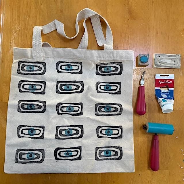 Create your own custom block-printed tote bag! Participants will design and carve a personalized 4″ x 6″ linoleum block, then use it to print a one-of-a-kind design onto a tote bag provided during class. You’ll be able to test carve using erasers, and test print on scrap fabric before diving in. At the end of the workshop, you’ll take your custom block home so you can continue printing at home!