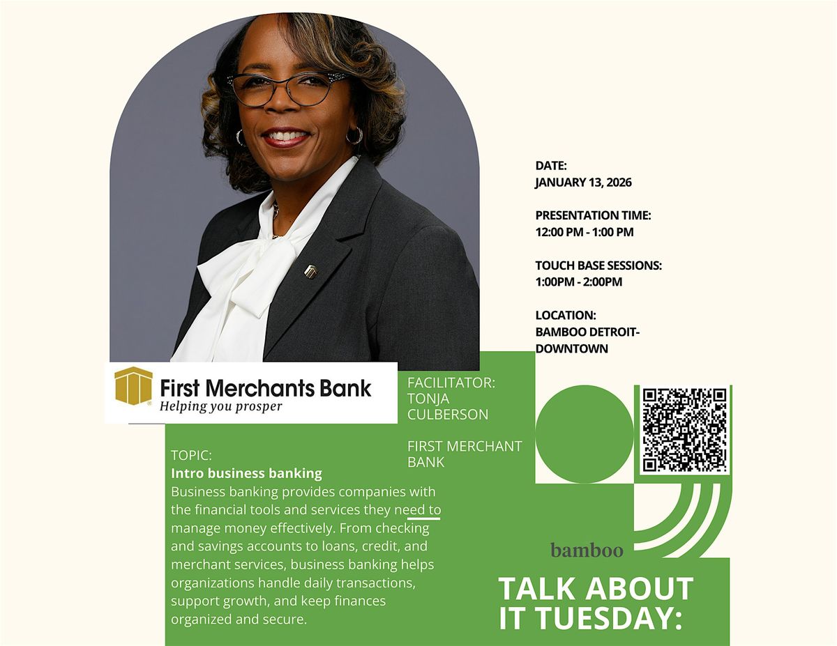 Join us for an awesome in-person session where you'll dive into the basics of business banking with expert Tonja Culberson Banking Center Manager Assistant Vice President from First Merchant Bank. Whether you're starting out or looking to get the most from your banking options, this event is perfect for you. Don’t miss the chance to ask questions and get real insights!
