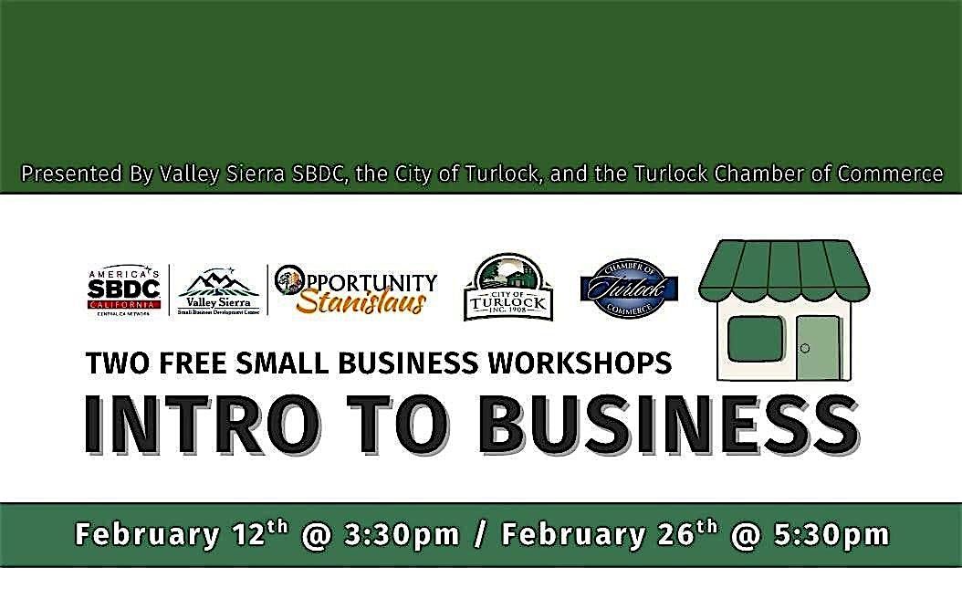 Join us for a free Intro to Business Workshop, presented by the Valley Sierra Small Business Development Center, in partnership with the City of Turlock and the Turlock Chamber of Commerce!
