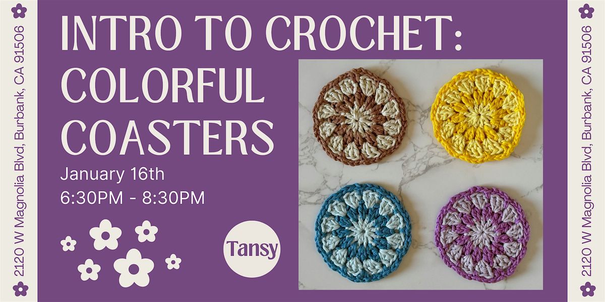 This 2-hour class is designed especially for beginners and includes everything you need to get started. You’ll learn basic crochet stitches, how to read a pattern, and create a set of handmade coasters from start to finish.