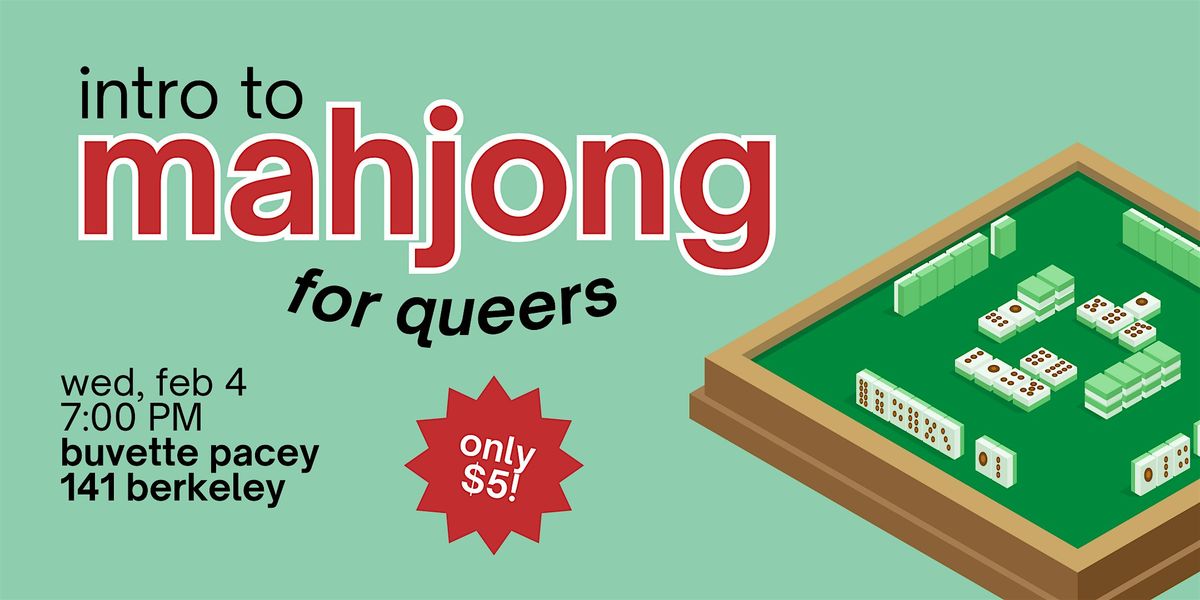 Learn to play mahjong in a casual and cozy environment with other queer folks. Hosted by comedian and community organizer Sofie Mikhaylova and Ki Little.