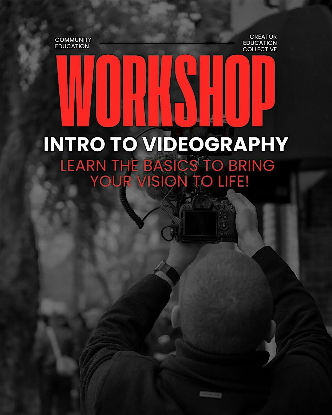 This workshop is for ANYONE interested in learning the basics of Videography! Whether you simply wish to have knowledge for a hobby or youre beginning a career, this WORKSHOP will cover all the basics and get you equipped to succeed!