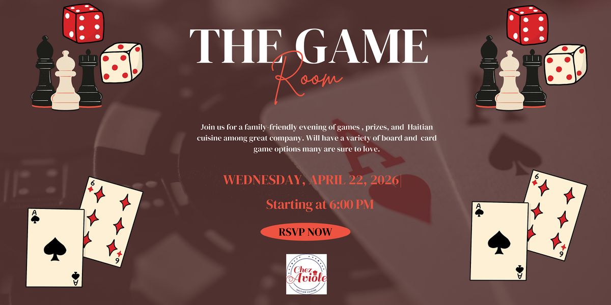 There is no better place to play board games than at Chez Aviole. The night will feature food, drinks, board games, cash prizes and more. To reserve a table to dine-in call 301-804-9702 than share with them, "The Game Room" sent you.