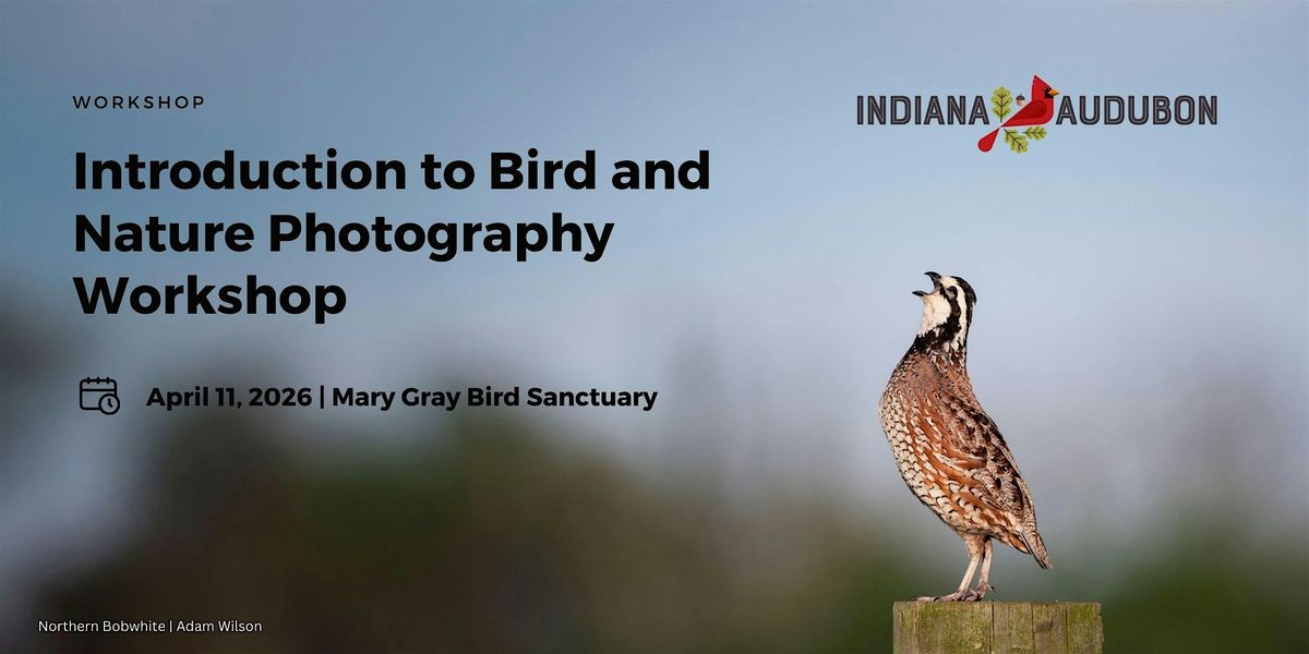 Join Indiana Audubon member Adam Wilson for a beginner-friendly workshop that helps you confidently photographing the natural world. Adam combines clear, practical instruction with real-world examples so you will leave knowing how the exposure triangle works, how to use natural light, how to get tack-sharp images, and how to strengthen your composition. You'll also learn the basics of photography gear, why post-processing matters, and the bird and wildlife ethics that keep photographic practice safe and respectful.