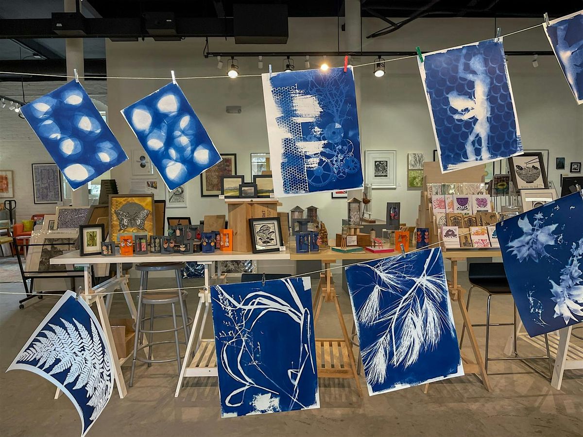Learn the simple, eco-friendly cyanotype process from a professional artist and educator! Cyanotypes are a historic photographic technique that produces stunning, rich blue prints — perfect for capturing the delicate beauty of nature. We'll start by finding and collecting suitable subject matter to work with (think plants, dried flowers, bits of cloth and anything you might find in your junk drawer!), then arrange them into original compositions. Eric will guide each participant through the exposure and processing steps, ensuring beautiful results. Every participant takes home their prints as one-of-a-kind artworks and will also have a folder, instructions and picture frame for displaying their work and continuing to explore the process. Suitable for ages 10+.