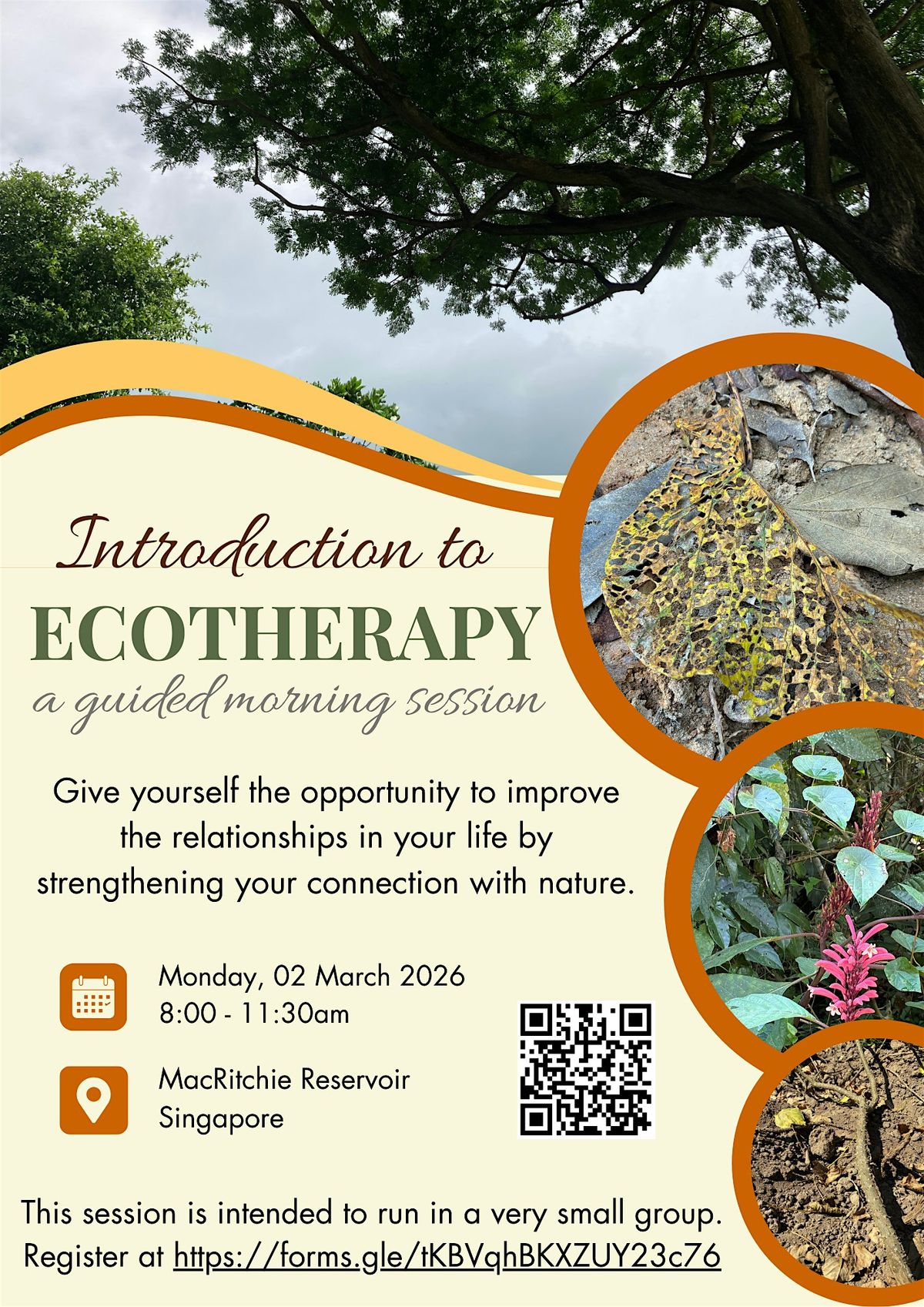 No ecotherapy experience needed. This is going to be facilitated with a very small group of participants.