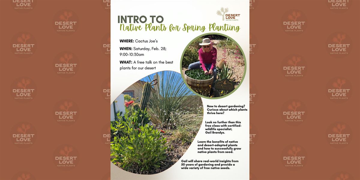 As the lead for the native plant seed collection and distribution effort with the Las Vegas Master Gardener Program, Gail will have a wide variety of free native seeds available for attendees. Plus, attendees will be among the first to access and purchase Desert Love’s spring native plant inventory, making this one of the earliest opportunities to bring these plants home for the season.