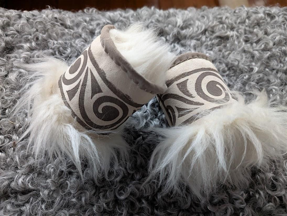 Participants in this class will create a pair of warm and wooly sheepskin wrist warmers. They will choose from the instructor's Norwegian wood block collection and a variety of permanent paint colors to create a one of a kind accessory. In addition to block printing on sheepskin, they will learn three stitches typically used in the Norwegian art of Skinnfell. Participants should have hand strength to stitch through layers of sheepskin, a small jewelry pliers helps with this.
