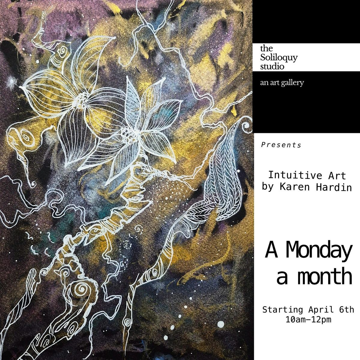 Come join Karen Hardin for a fun and inspiring in-person workshop where you'll dive into the world of intuitive art. No rules, no stress—just you, your creativity, and some cool art techniques to unlock your inner artist. Whether you're a pro or just starting out, it's all about expressing yourself freely and enjoying the process. Bring your open mind and get ready to make some magic!