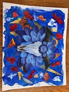 We will begin with a brief grounding meditation, then spend the rest of the class tearing, cutting, and gluing as you intuitively select images, colors, and textures that catch your eye. You will leave with a one-of-a-kind art piece that you can display or keep in a journal.