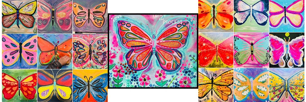 We'll each create a large, vibrant butterfly on a 16" x 20" stretched canvas. The butterfly outline will be pre-traced so we can focus on exploring colour, pattern, texture, symbolism, and emotion using a variety of fun art materials.