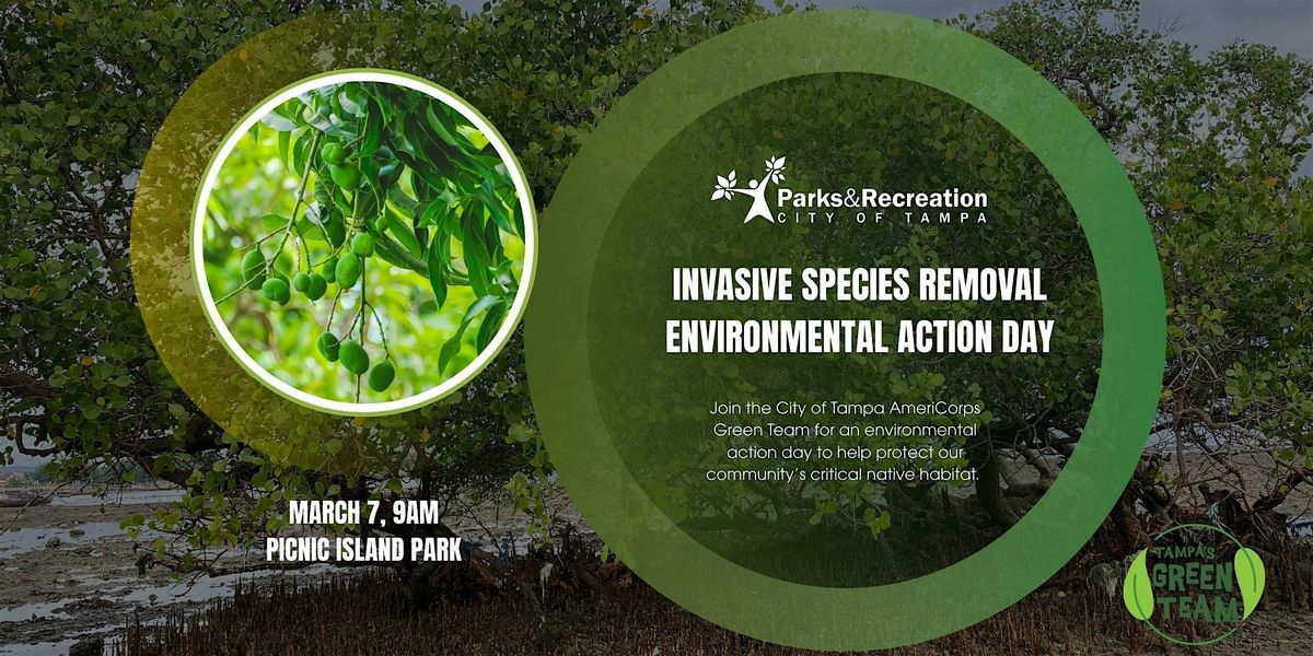 Join Tampa Parks & Recreation & the City of Tampa’s Green Team on March 7 for a hands-on Roots & Shoots Environmental Day of Action as we team up to remove invasive plant species and help restore Picnic Island Park’s critical natural habitat.