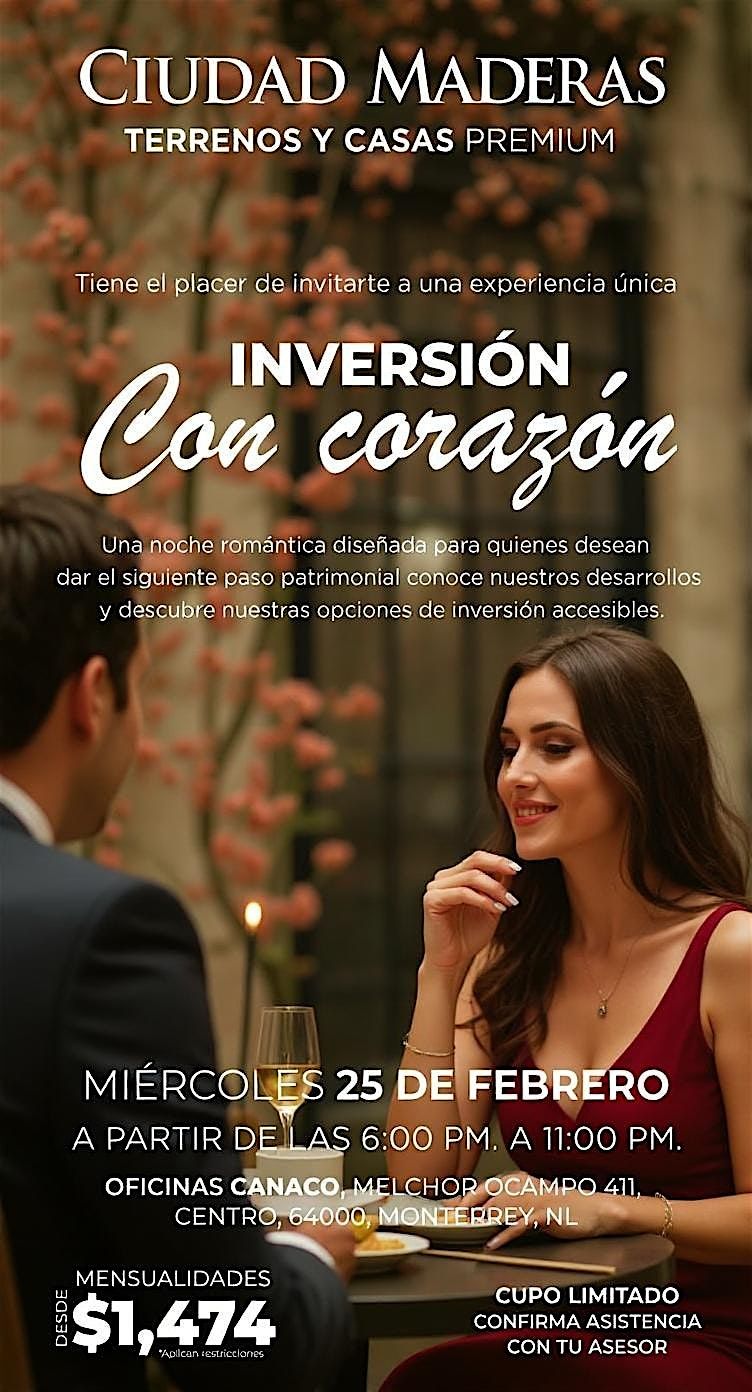Le invitamos a un evento formal de inversión inmobiliaria, diseñado para presentar proyectos, avances y esquemas de inversión, así como resolver dudas finales para quienes se encuentran en etapa de decisión.