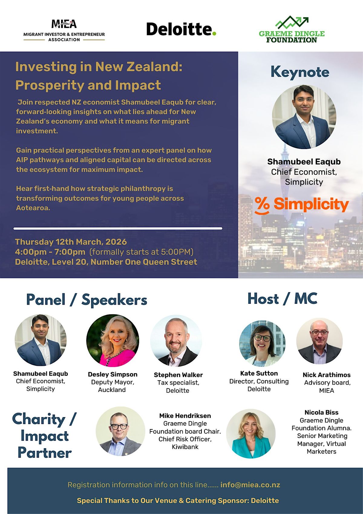 Join respected NZ economist Shamubeel Eaqub for clear, forward‑looking insights on what lies ahead for New Zealand’s economy and what it means for migrant investment.