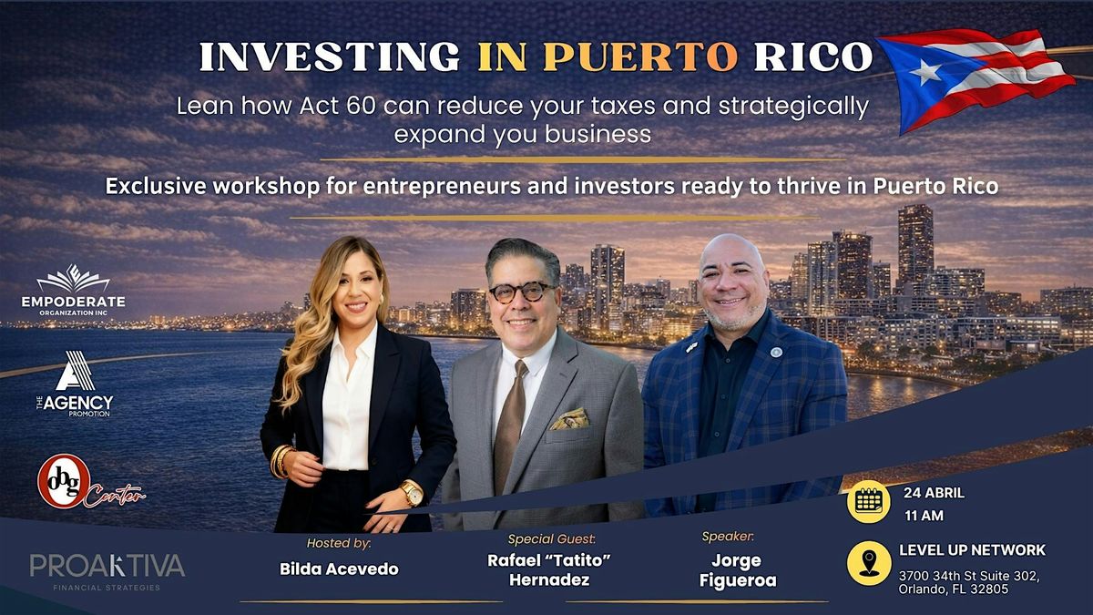Join us for an exclusive workshop designed for entrepreneurs, investors, and business owners looking to expand into Puerto Rico and take advantage of its powerful tax incentives.