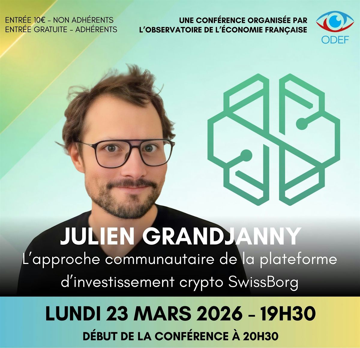 L’Observatoire de l’Économie Française reçoit Julien Grandjanny, membre du conseil d’administration de SwissBorg, élu par la communauté pour la représenter lorsque l’entreprise a ouvert un siège du conseil à un membre issu de son écosystème.