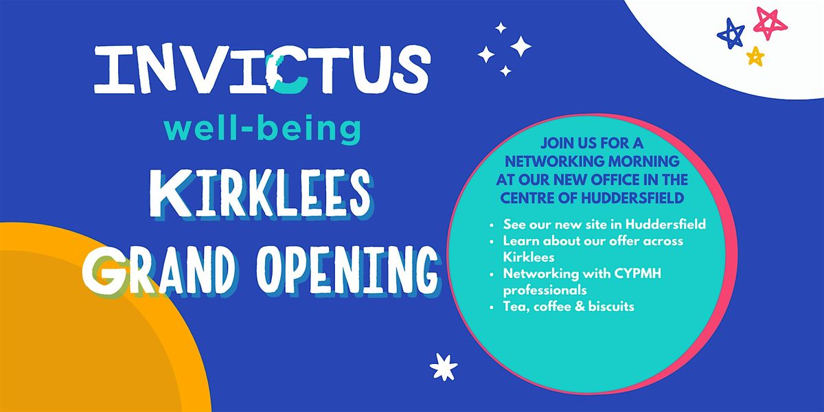 We are delighted to invite you to join us for the red ribbon opening of our new Invictus Wellbeing Kirklees office on Wednesday 28th January, from 10:00am to 1:00pm.
