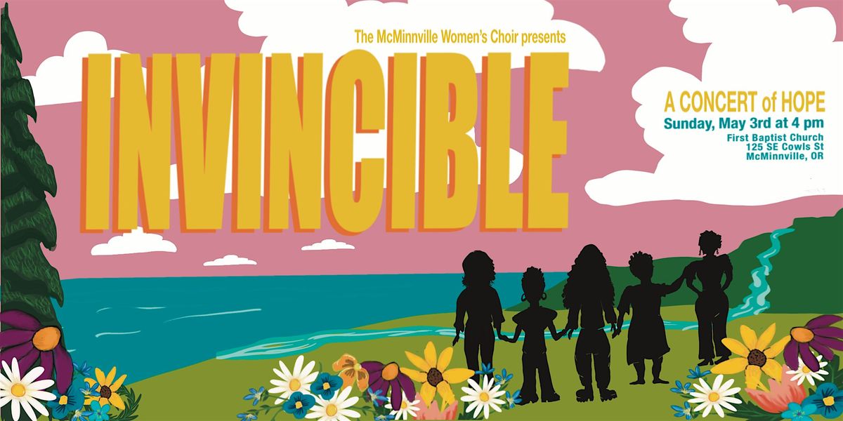 You are invited to join us at the First Baptist Church on Sunday, May 3rd at 4:00 PM for our spring concert, Invincible! This concert celebrates resilience, connection, and the enduring power of love. We sing of light to shine and share, of stars, of summer, of storms and storms passing over, reminding us that even in challenging times, hope endures and love leads the way. We stand invincible together, because of course, we cannot be invincible alone.