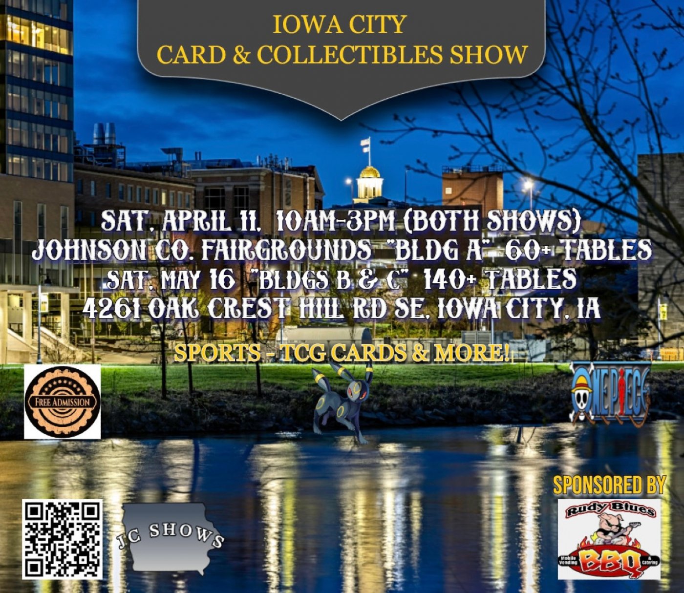 #JCShows #jcshowsia #CardShow #SportsCards #TCG #IowaCity #CollectiblesShow #Pokemon #MTG #OnePieceCards #RudyBluesBBQ #IowaEvents