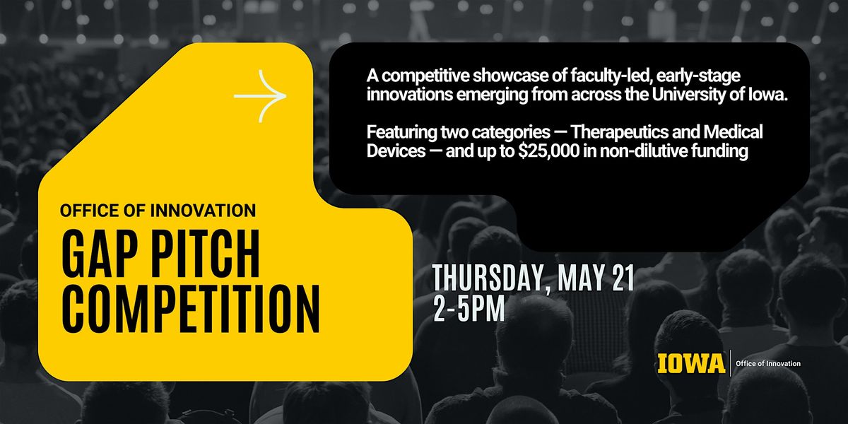 The Office of Innovation GAP Pitch Competition is a competitive showcase of faculty-led, early-stage innovations emerging from across the University of Iowa, designed to accelerate the translation of research into high-impact startups.
