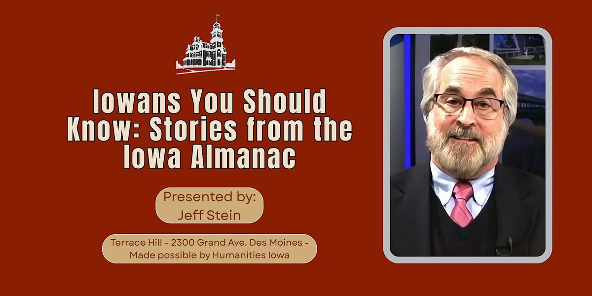Terrace Hill, Iowa Governor’s Residence and National Historic Landmark, has received funding from Humanities Iowa, a private, non-profit organization to host a free, educational presentation entitled Iowans You Should Know: Stories from the Iowa Almanac presented by Jeff Stein, Thursday, March 19 at 5:00 pm in the Terrace Hill Drawing Room.