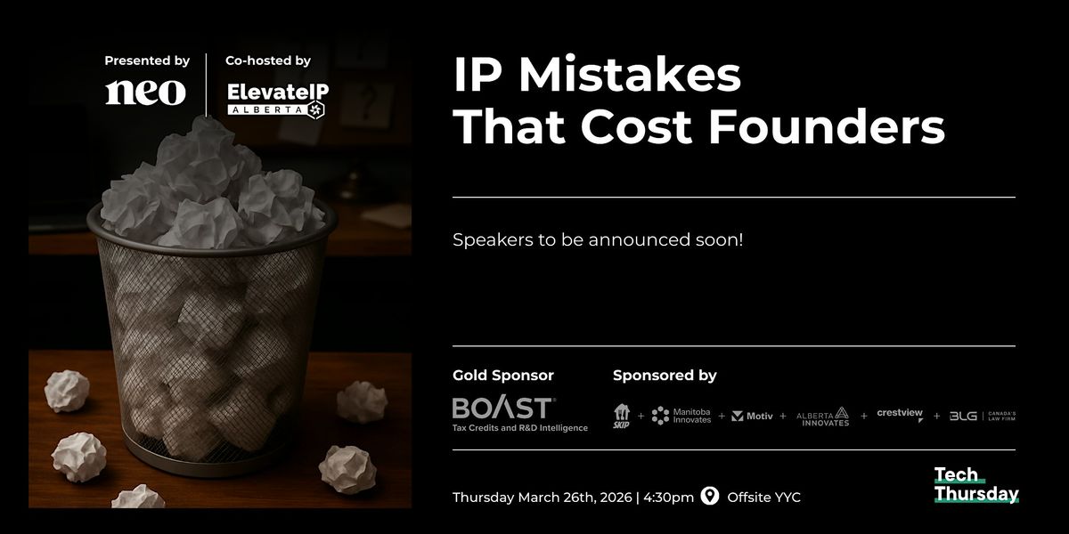 We’re excited to co-host with ElevateIP Alberta for a conversation on the IP decisions founders regret and how to avoid making them yourself.
