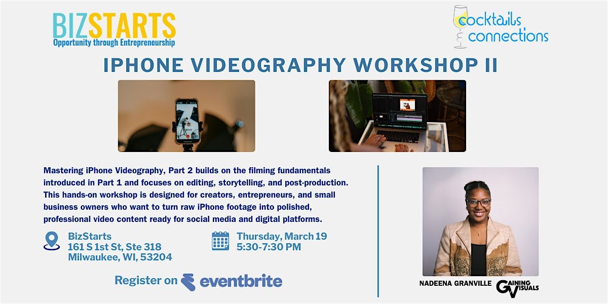 Mastering iPhone Videography, Part 2 builds on the filming fundamentals introduced in Part 1 and focuses on editing, storytelling, and post-production. This hands-on workshop is designed for creators, entrepreneurs, and small business owners who want to turn raw iPhone footage into polished, professional video content ready for social media and digital platforms.