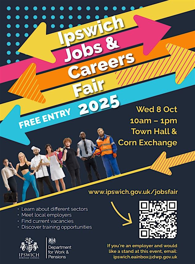 Ipswich Borough Council and the Department for Work and Pensions are proud to host the largest careers event in the area, bringing together up to 60 employers and training providers under one roof.