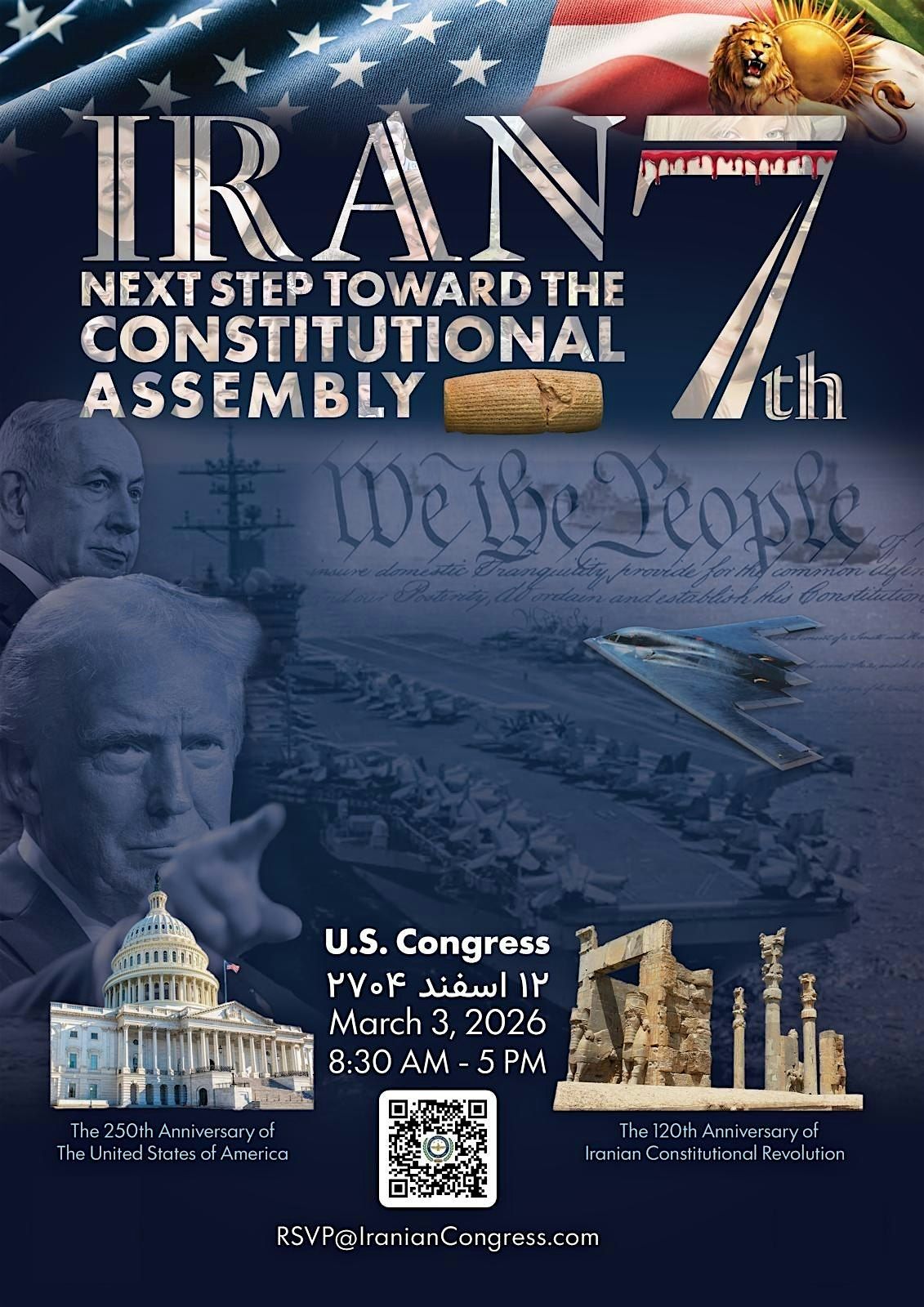 Organized in recognition of the 120th anniversary of Iran’s Constitutional Revolution and the 250th anniversary of the founding of the United States, the conference will focus on the legal, political, and institutional foundations necessary for a peaceful and constitutional transition in Iran. Core discussions will address the rule of law, separation of powers, protection of civil liberties, democratic accountability, and institutional reform.