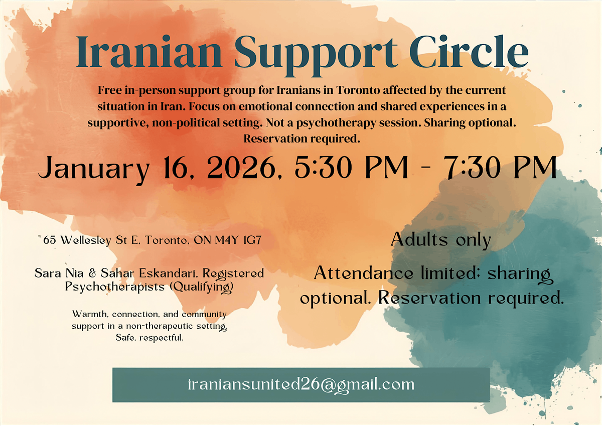 A one-time, in-person support group for Iranians who are emotionally affected by the current situation in Iran.