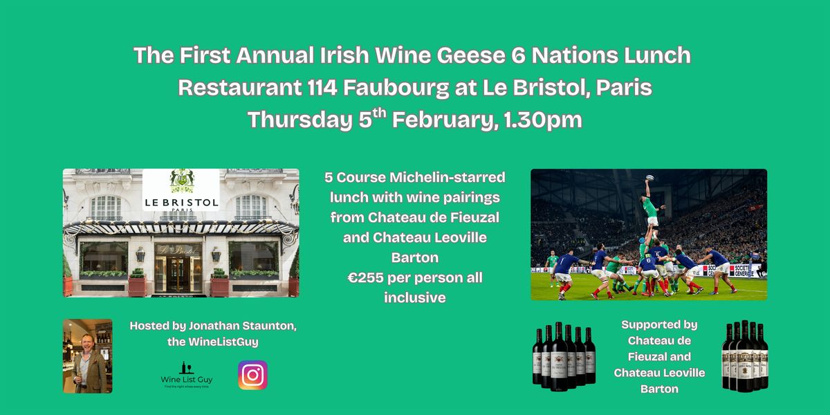 Inaugural 6 Nations Irish Wine Geese Lunch at Le Bristol Paris. 5 courses, legendary wines and a celebration of our shared wine history.About this Event