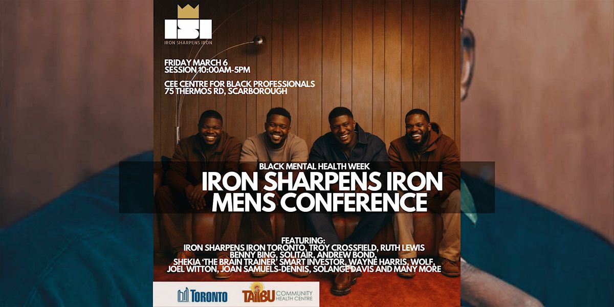 Come ready to be challenged, inspired, and equipped to live the life you’re meant to lead. Brought to. by Iron Sharpens Iron, Taibu Community Health Center, and The City of Toronto.
