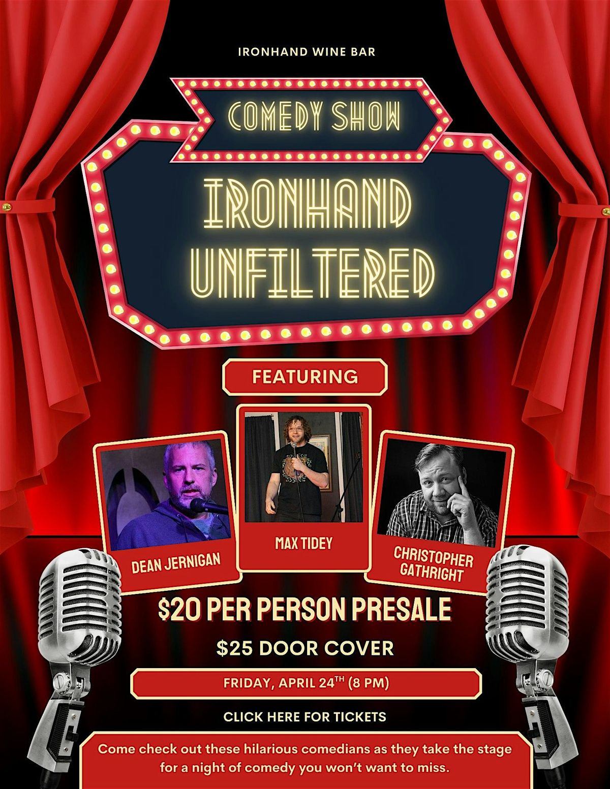 We’re trying something new at Ironhand! Join us for our first-ever comedy show, Ironhand Unfiltered, a night of bold, hilarious stand-up featuring a lineup of seriously funny comedians ready to bring the laughs.
