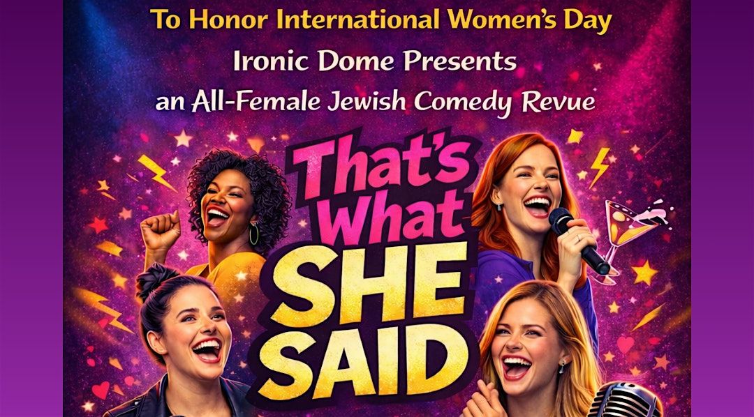 Get ready for a night full of laughs, surprises, and good vibes at That's What She Said! In honor of International Women's Day we'll have a night full of the funniest Jewish gals this side of Yonge Street!