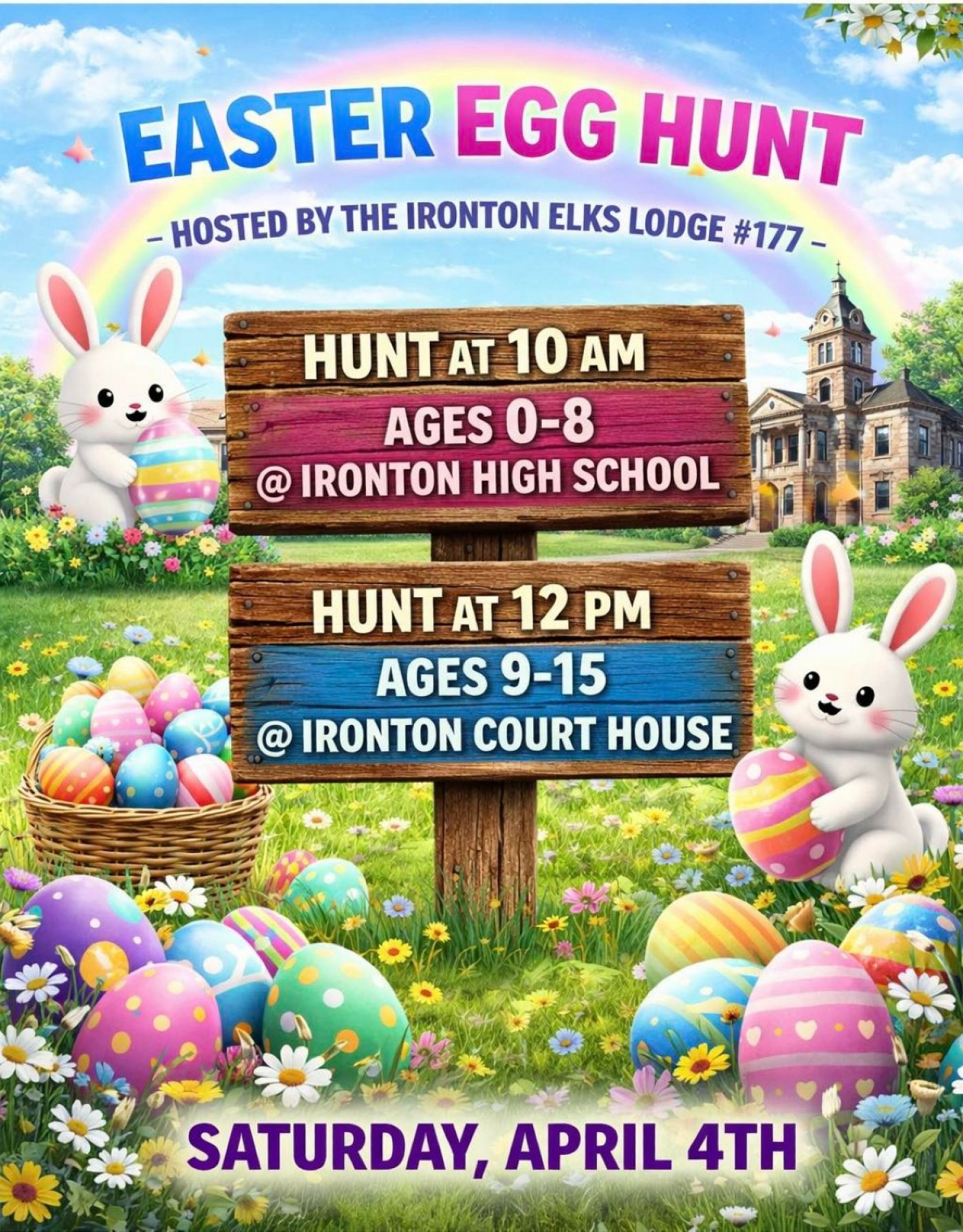 Second Egg Hunt will be Noon at the Ironton Courthouse for ages 9 to 15.