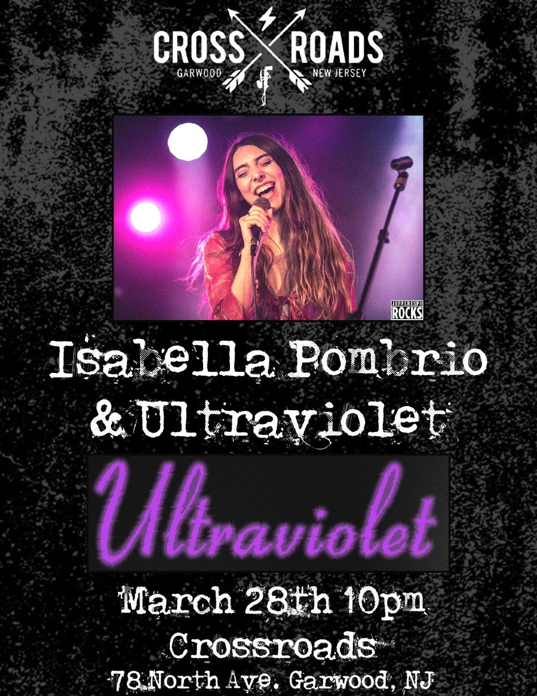 isabella pombrio & Ultraviolet take the stage at 10pm on March 28 2024 at Crossroads. Crossroads is located at 78 North Ave in Garwood NJ.