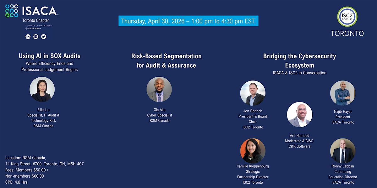 ISC2 Toronto Chapter and ISACA Toronto Chapter are proud to join forces to strengthen the Toronto cybersecurity community through a special collaborative event this April. This four-hour session is built on the core belief that cybersecurity is a collective effort, and by working together, we create a more resilient professional landscape for everyone.