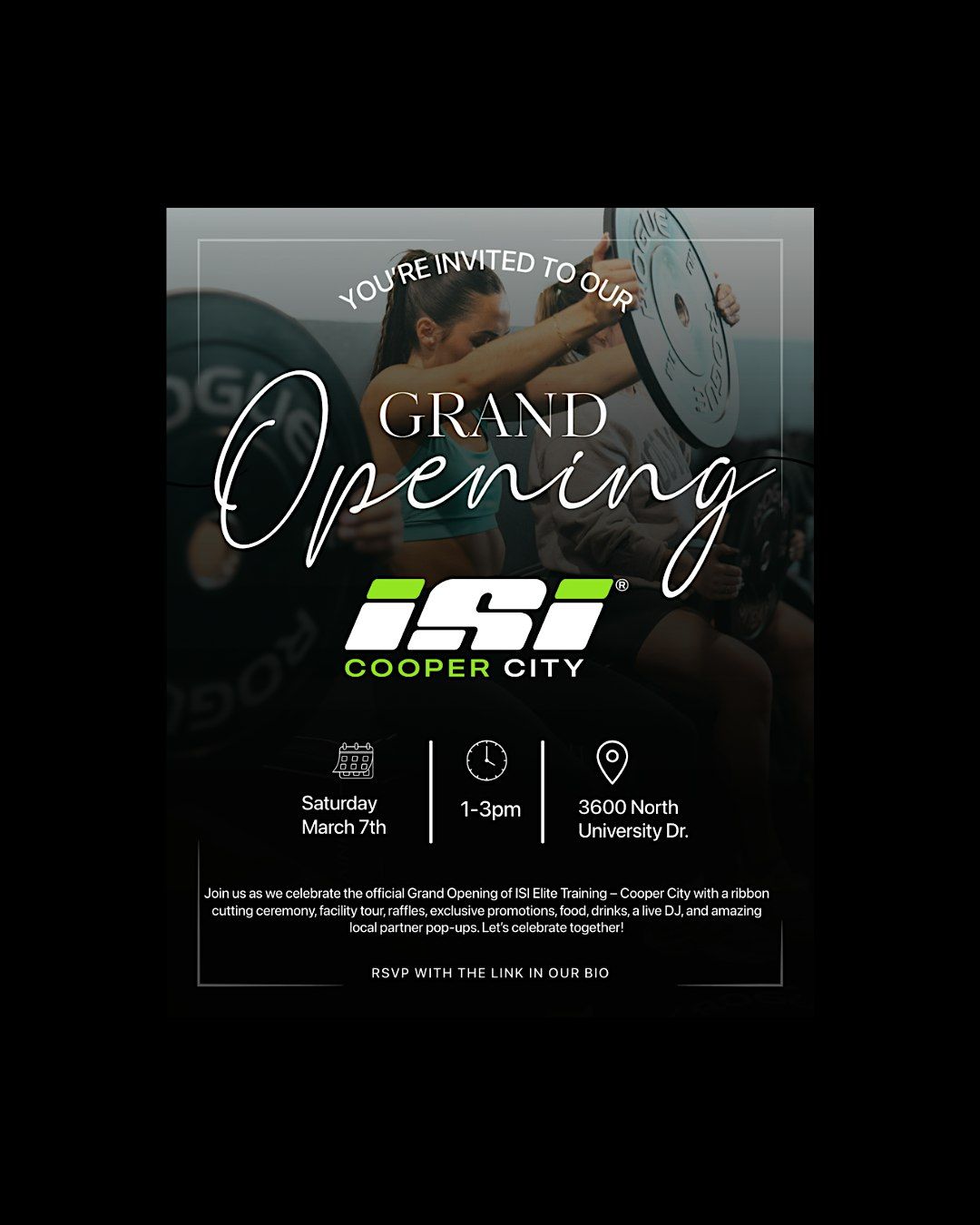 ISI Elite Training – Cooper City is celebrating our GRAND OPENING and you’re invited.