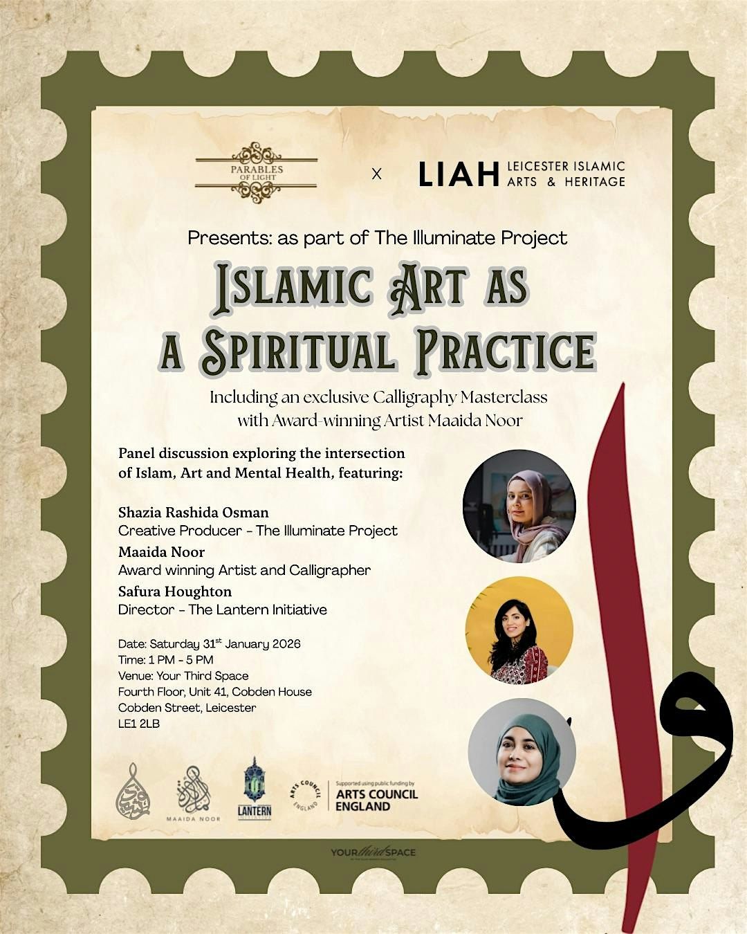 Following the discussion, attendees will be invited to take part in an exclusive calligraphy masterclass led by Maaida Noor, offering a rare opportunity to engage with calligraphy not just as an artform, but as a contemplative, embodied spiritual practice.