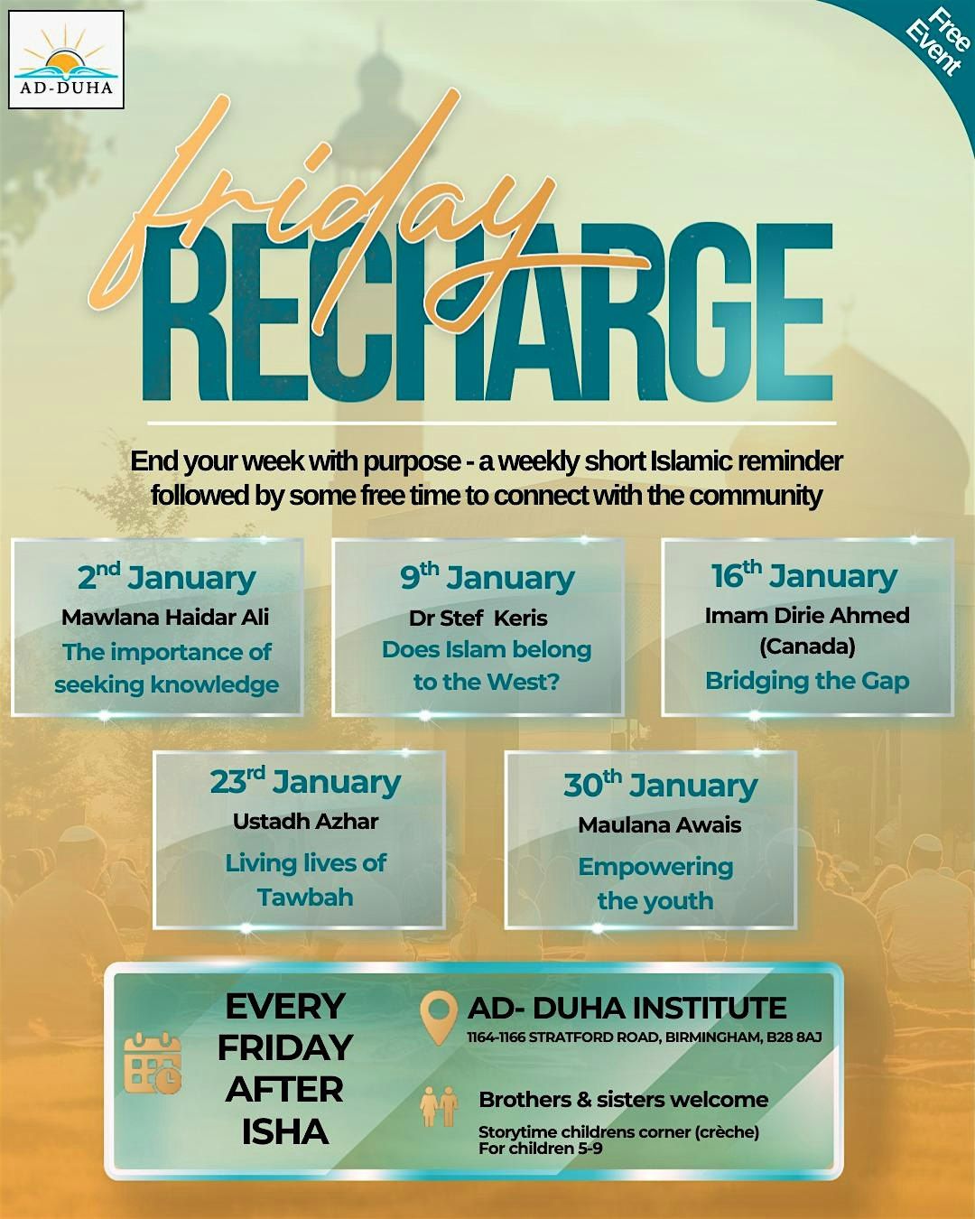 🔗 Register (newcomers only): https://ad-duha.org.uk/social/friday-recharge/