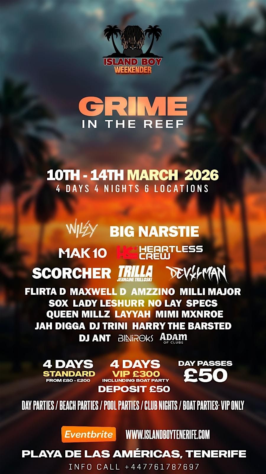 GRIME IN THE REEF Weekender which is heading to Tenerife in March so join us!