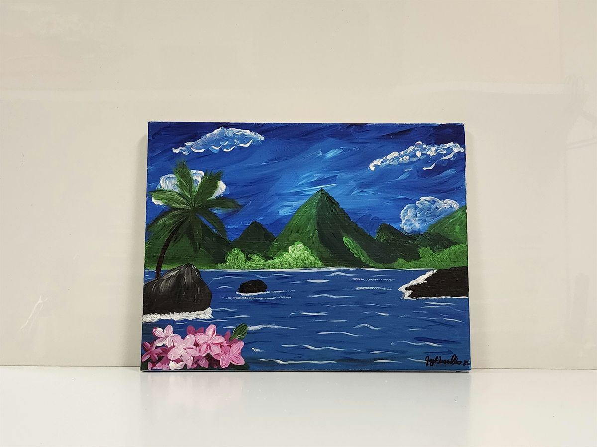 Paint with Joy and learn to create beautiful flowers, ocean waves and a palm tree, fluffy clouds with acrylic paints. She will share with you how to design, mix and blend colors to make different textures with paint and brushes.