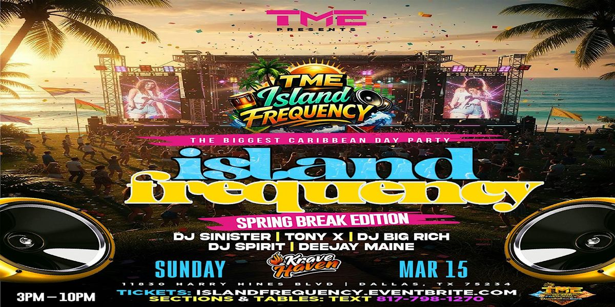 Welcome to Island Frequency! 🌴 Get ready to dance the night away at Krave Haven on March 15, 2026 at 3:00 PM. Feel the beats and let the music take you on a journey. Join us for an unforgettable experience filled with good vibes and great energy. Don't miss out on this epic event! See you there! (Central Time)