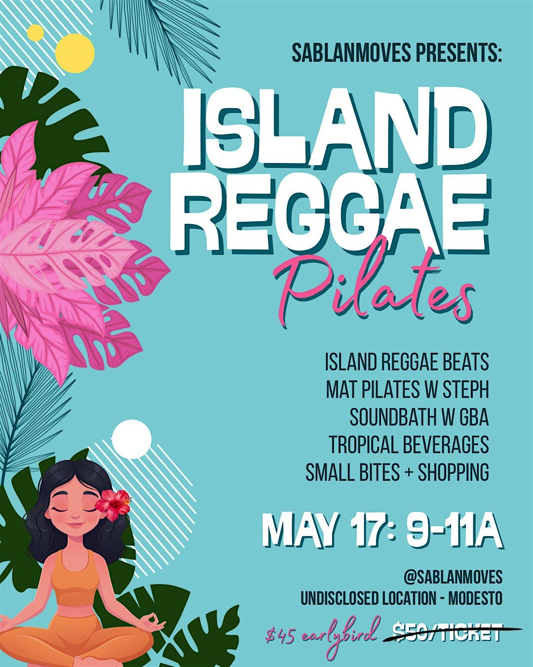 Welcome to Island Reggae Pilates where we’ll enjoy movement in the sunshine to our favorite island reggae beats followed by a soundbath!