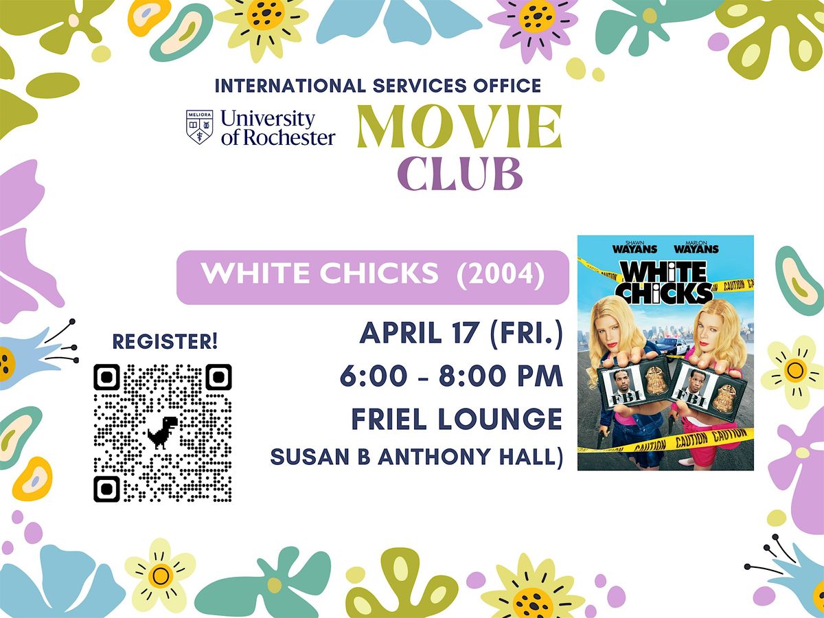 We will begin the movie (White Chicks) at 6:00 PM and end around 7:50 PM. You are welcome to drop by and leave earlier if needed. Light refreshments will be available but please feel free to bring your own food.