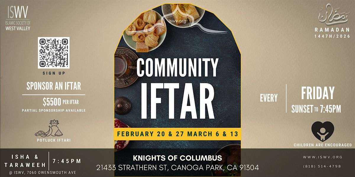 To make these gatherings possible, the weekly sponsorship for Iftar is $5,500. We encourage each family to contribute towards this fund. If you would like to sponsor an Iftar, please use the following link https://goodbricks.org/page/iswv.org/ramadan-2026-iftar or reach out to us at [email protected].