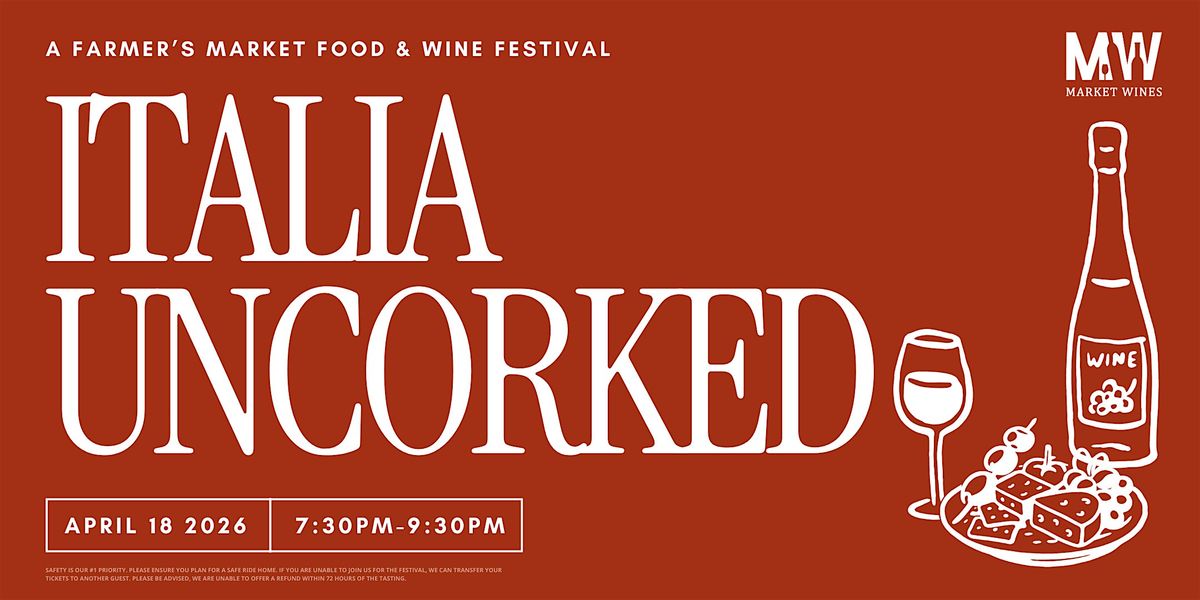 Italia Uncorked is an exciting, two-hour Saturday-night wine-and-food festival serving exceptional Italian wines alongside perfectly paired bites from local farmers’ market vendors.